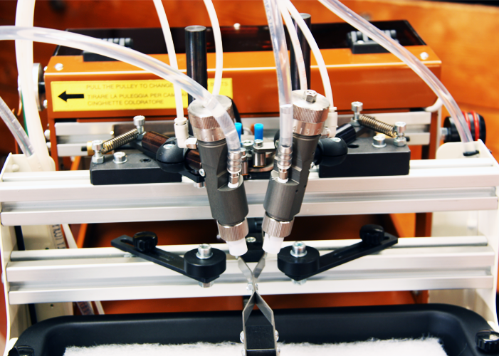 Félautomata festőgép peremekhez permetező festékrendszerrel